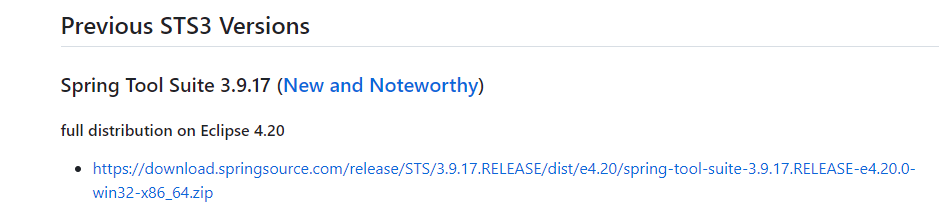 - Spring Tool Suite 3 verion 공식 다운로드 페이지로 이동합니다.