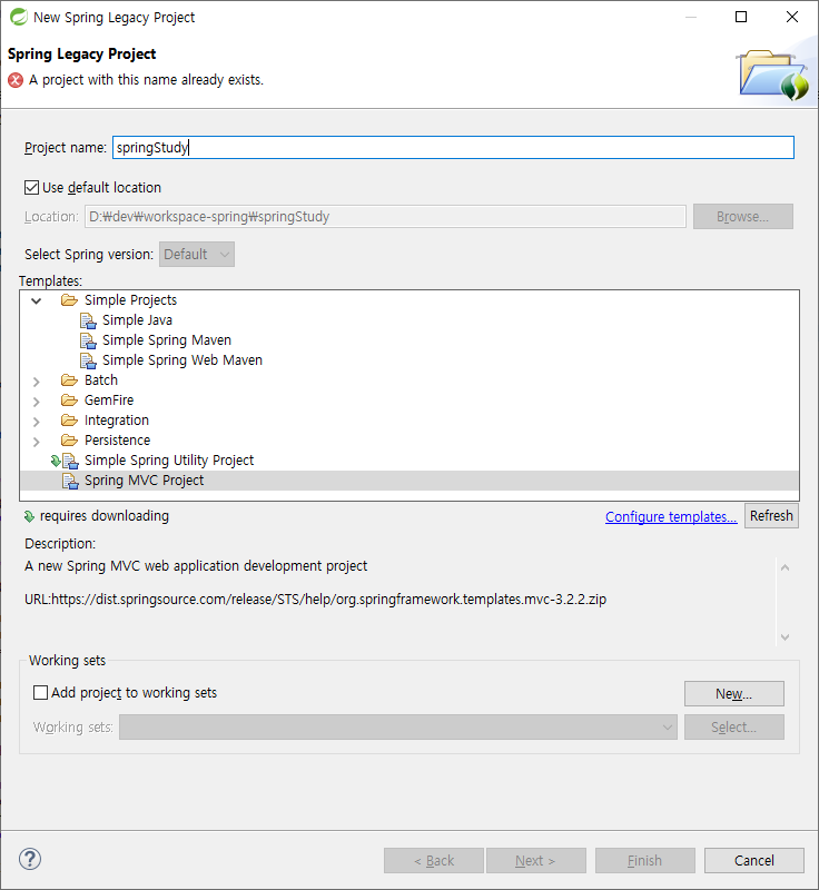 spring MVC Project templates 이용방법
