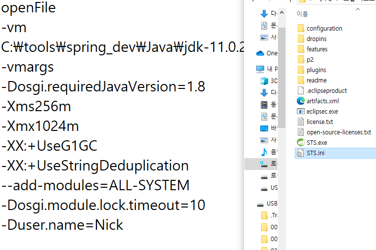 sts.ini파일에-Duser.name=영문명을 추가하여 코드 내에서 사용자의 이름을 자동으로 채워 넣습니다.